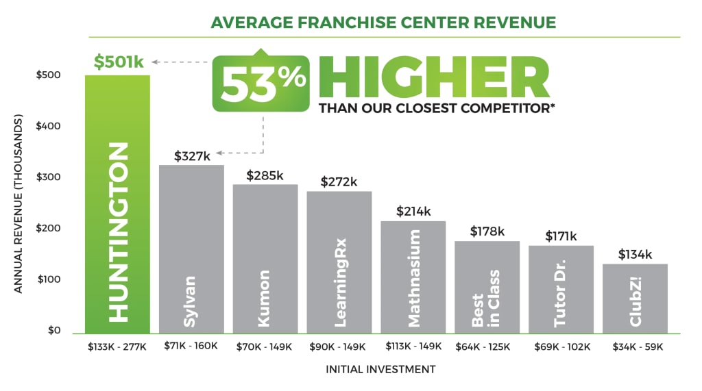 In the education franchise business, Huntington Learning Center is well-known because it’s the highest-grossing tutoring franchise in the U.S. Between 2009 and 2016, franchise revenue for Huntington increased an average of 32%(*).