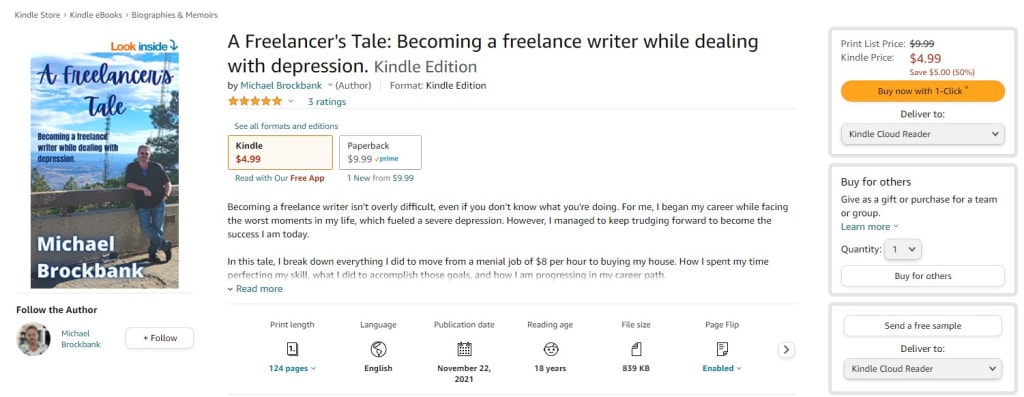 Recently, I published my first book on Amazon's KDP platform. It was suggested by one of my viewers, so I decided to give the entire process of self-publishing a try. I wrote A Freelancer's Tale with the sole purpose of using it as a vessel to expand my knowledge of how to publish a book on my own. So, I'm not expecting to make a lot of money, especially since it's an autobiography of someone very few people know.