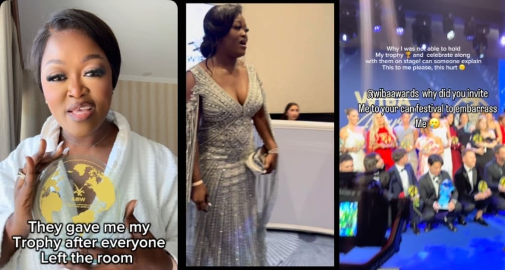 Alice Dimplz was invited to receive an award at the prestigious WIBA Awards. However, reports indicate that she was not called to the stage during the main event. Instead, she received her trophy after the ceremony had concluded and most attendees had departed. Alice shared her experience on social media, expressing feelings of humiliation and disappointment. In a video, she stated, "They gave me my award after the event was over and everyone had left the room" .