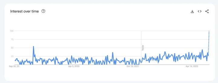 Below is the trend report for solopreneurship over the last five years — 2021 was a breakout year and it’s only been on the rise since then.