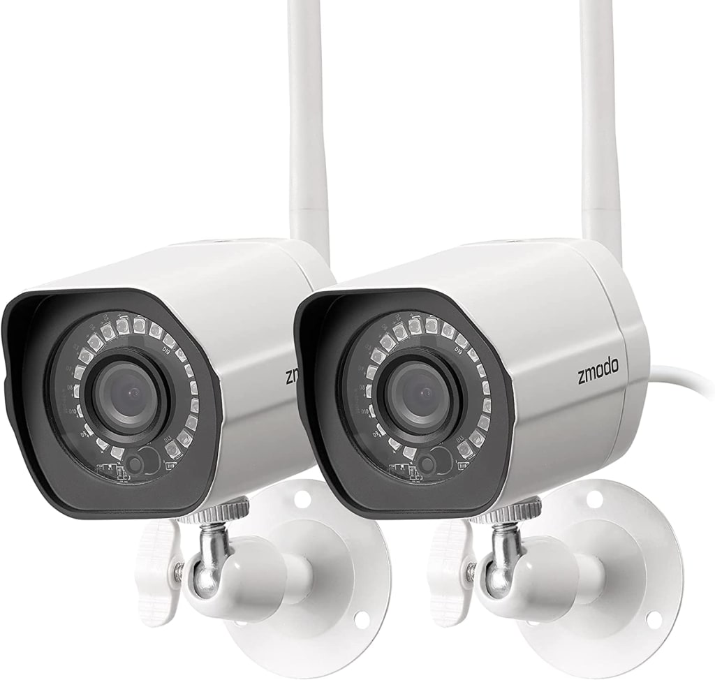 Zmodo Outdoor Wireless (2 Pack), 1080p Full HD Home Security Camera System , Works with Alexa and Google Assistant, White (ZM-W0002-2)