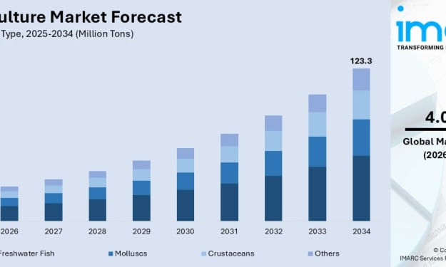 Rising global demand for seafood, declining wild fish stocks, and growing awareness of aquaculture's nutritional benefits are driving steady expansion in the market, supported by technological advances in farming practices, sustainable production methods, and increasing protein consumption in emerging economies. According to IMARC Group's latest data, the global aquaculture market size was valued at 82.8 Million Tons in 2024. Looking forward, IMARC Group estimates the market to reach 122.9 Million Tons by 2033, exhibiting a CAGR of 4.03% during 2025-2033. Asia-Pacific currently dominates the market, holding a market share of over 90.7% in 2024.