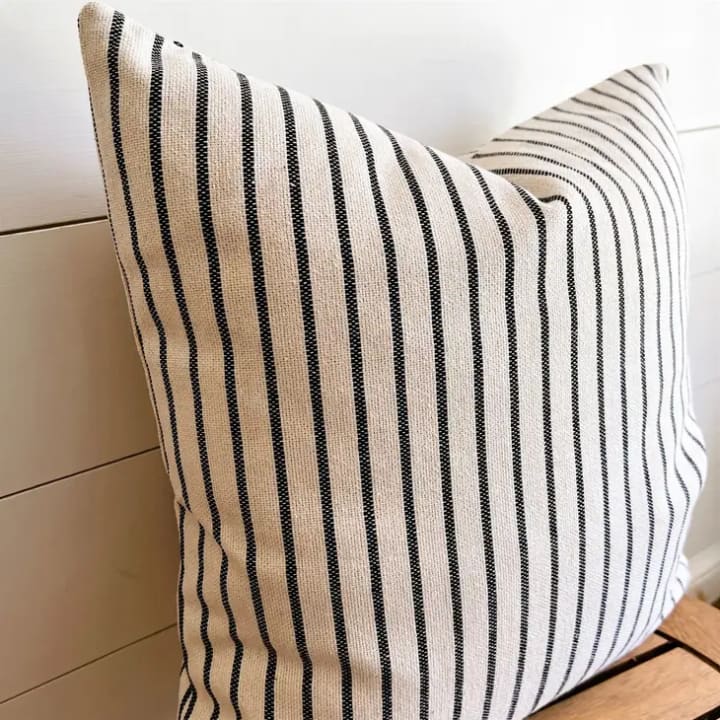 This striped pillow cover is a great way to add some farmhouse charm to your home! We can imagine this beautiful pillow cover out on your porch on a swing or antique rocking chair. Or maybe on your couch in your cozy living room! It's a versatile design that can be used in multiple rooms and for multiple seasons! Definitely looks like it belongs in a Fixer Upper house!