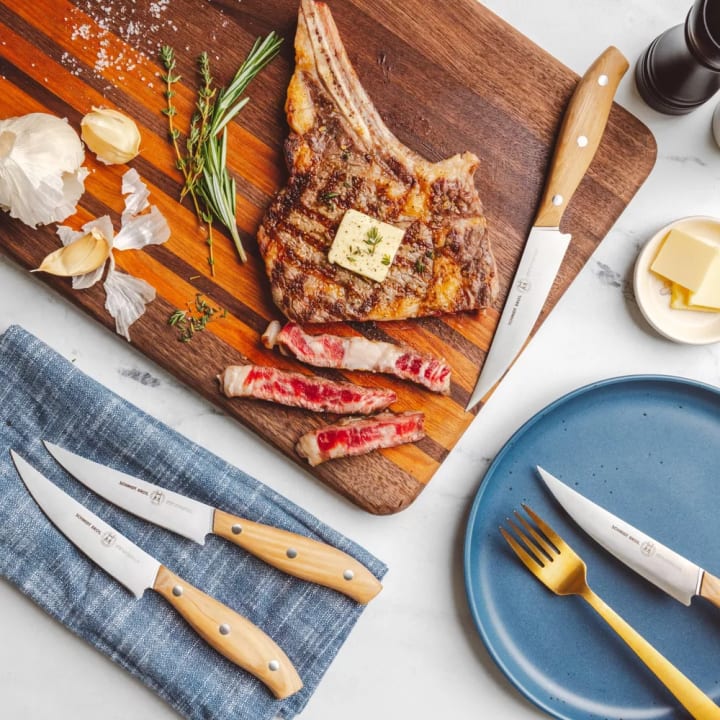 We can always use a new set of good knives! This 4 piece steak knife set with wooden handles is great for anyone who loves to cook, or eat!
