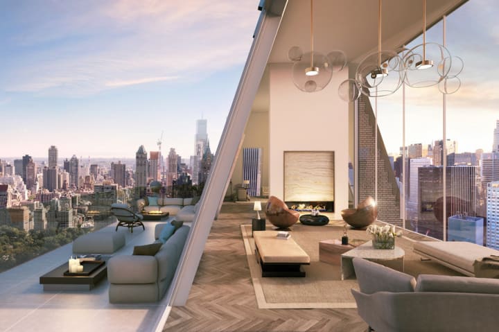 Located on the 89th and 90th floors of a skyscraper on Central Park South is a 23,000-square-foot, four-story apartment offered at $250 million.