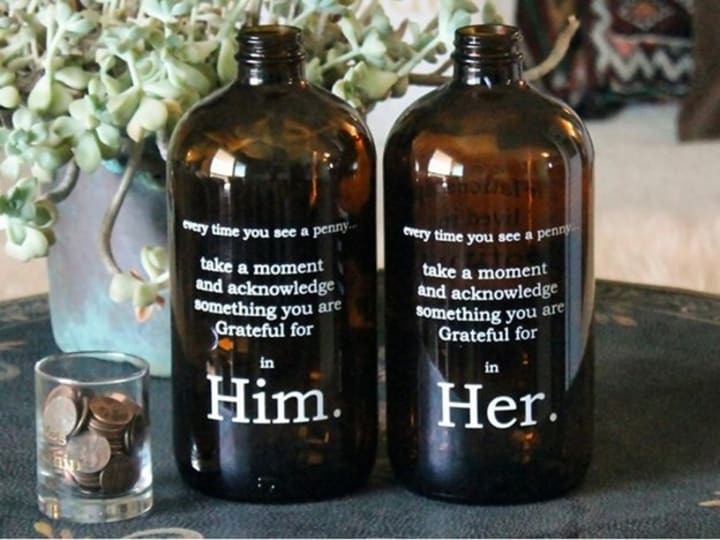 Do your in-laws fight like two crackheads over a crack pipe? Well then this gift is for them! Created specifically to evoke a sense of gratitude. Their company motto is "Change your thoughts, change the world, one penny at a time". Every time a person adds a penny to the jar they think of something positive or grateful about the other. Don't be surprised if you visit after a year and the jars are empty, maybe they cashed them in at CoinStar or something.