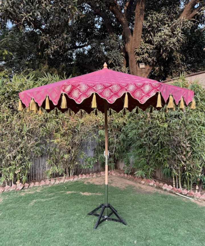 People are creating defined zones in their gardens—lounging areas, meditation corners, or outdoor dining nooks—and using Indian parasols to provide shade and tie the space together. A well-placed parasol in rich, traditional Indian colors like maroon, saffron, or indigo can bring a garden to life.