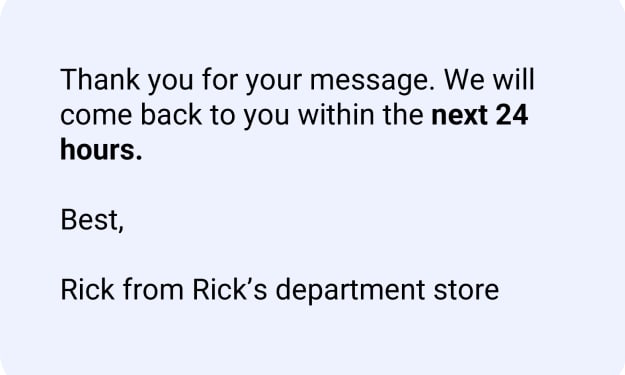 A good live chat tool always provides a backup in case the chatbot doesn’t understand and a human agent is unavailable. Think about a contact form or an email that is sent to your business so you can pick it up the first thing in the morning.