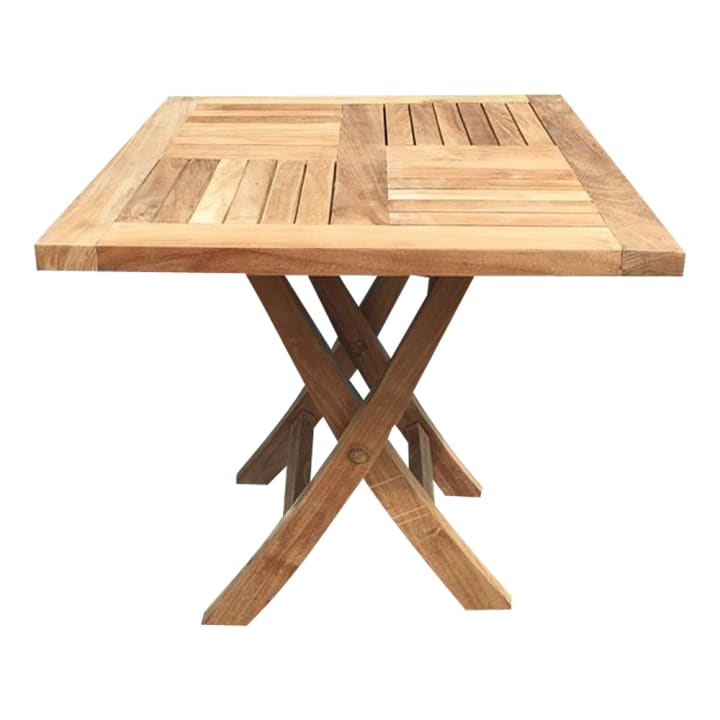 If you have limited space or like to move your furniture around often, this table is a smart choice. It features a classic slatted wooden top and a foldable base. You can fold it flat when not in use and store it away without any hassle.