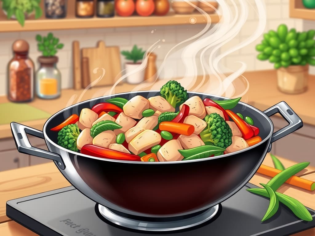 Use a Wok or Large Skillet: A wok is ideal for stir-frying because of its shape and ability to distribute heat evenly. However, a large skillet will also work.