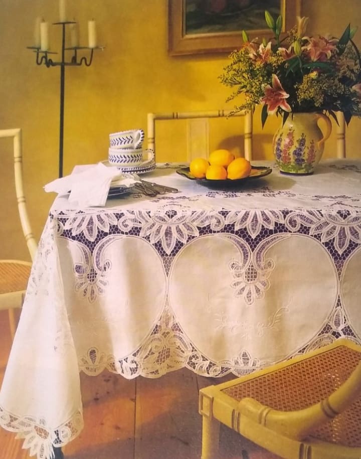 Table linen does not need to be restricted to the dining-room. It can also be used to set a style for all types of table. Plain, linen or cotton tablecloths are practical and elegant, and can be enhanced with trimmings, while patterned fabrics can be chosen to coordinate with a rooms style.
