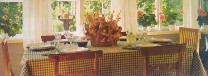 For a tablecloth that is informal and smart, gingham check is an ideal fabric choice. Woven in lightweight cotton, it gives a country look, and is effective when used in kitchens as well as in informal dining-rooms.