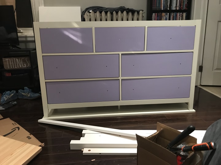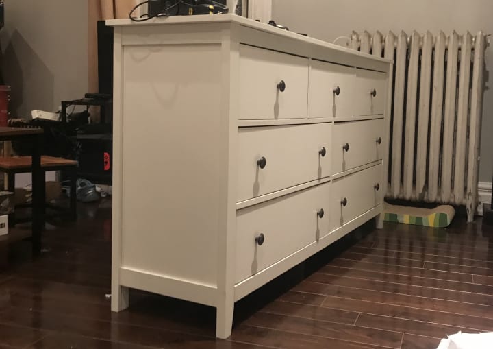 Supplies I Needed: A measuring tape, a person to help move a dresser (thanks boyfriend), and access to a vehicle.