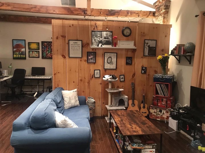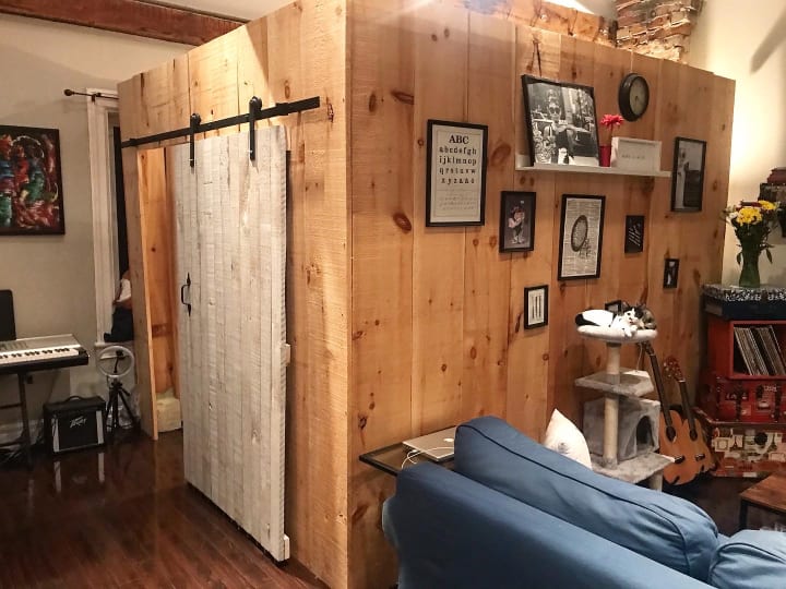 When we lived in our studio loft, I made us a wall with a sliding barn door so we could have a bedroom.