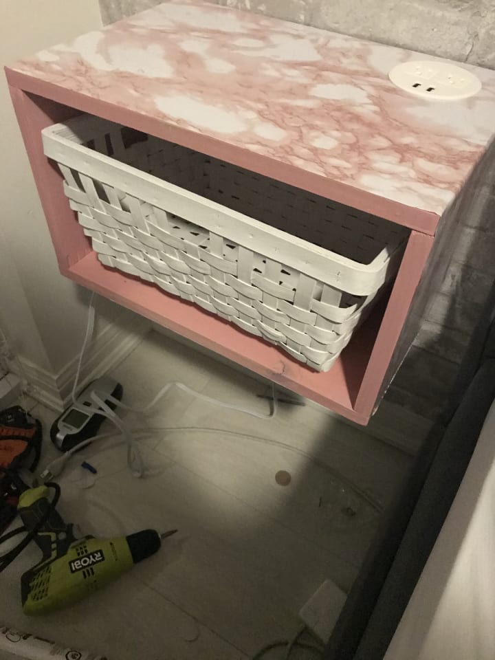 In our new place, we finally decided to purchase a good bed frame with storage underneath. We didn't realize we wouldn't be able to open the drawers with our side tables, so I made some floating nightstands for us.