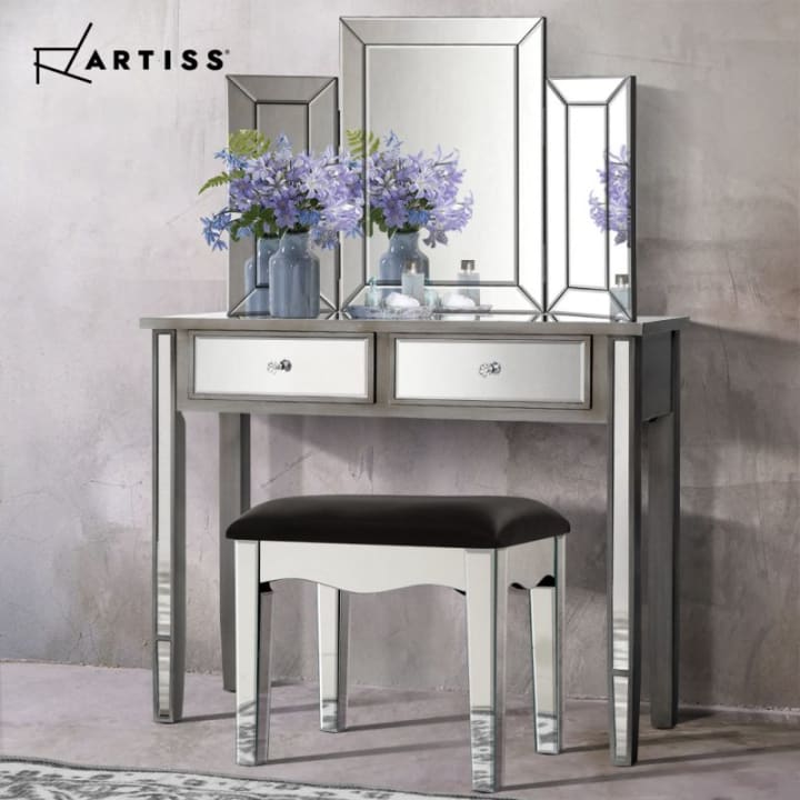 4. Artiss Mirrored Furniture Dressing Table Dresser Chest of drawers Mirror Stool