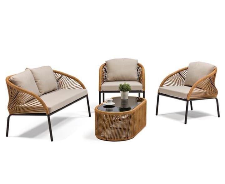 3. Hello Furniture 4-piece Lazio Outdoor Sofa Chairs and table set - Natural