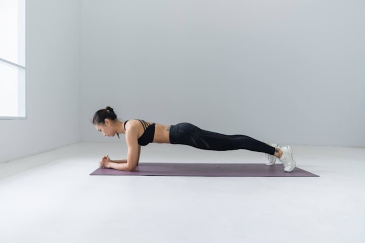 Plank is one of the most effective exercises to strengthen your core , legs , spinal cord ,hands and more . All we need to do is to stand as it is as shown in the image and sustain for some minutes . And same , all we need is a flat surface .