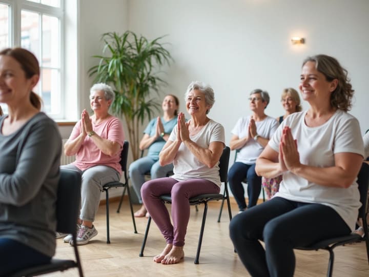 People recovering from surgery, injury, or managing chronic conditions such as arthritis benefit from chair yoga’s gentle approach. Movements can be scaled up or down to suit different abilities.