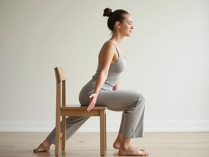 6. Chair Pigeon Pose – Place one ankle over the opposite knee while seated, leaning forward slightly. Stretches hips and glutes.
