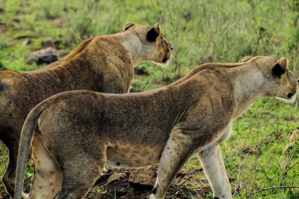 Guide point: “There! Lion hunting.” Everyone is silent. Lions move low, careful, and smart. The moment feels slow, breath stops, then boom—life of nature right in front of eyes.