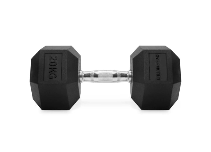 Bulldog Gear's Hex Dumbbells 2.0 are a versatile training tool, available from 2.5kg up to 40kg in 2.5kg increments, sold in pairs. The dumbbells have knurled rubber handles that provide a great grip and resistance against sweat, and shock-absorbent virgin rubber-coated dumbbell heads to protect your floor.
