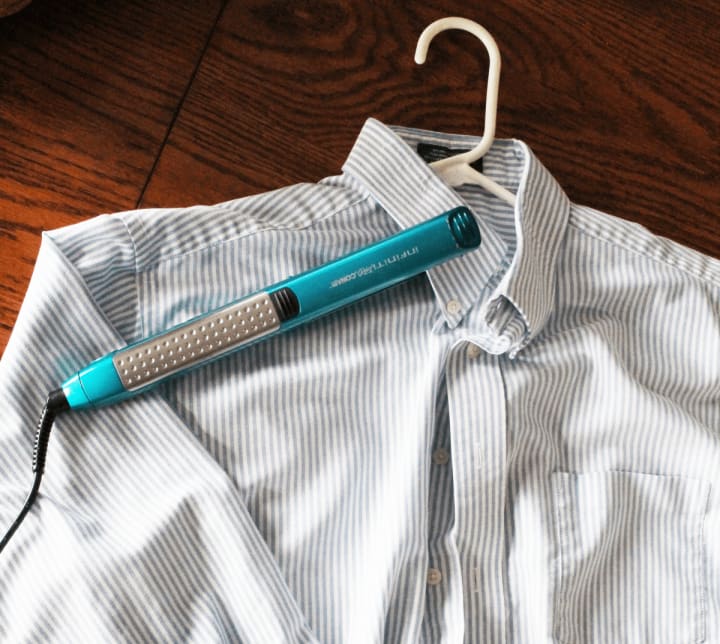 Usually used to tame unruly hair, hair straighteners have a heated, flat surface that is easily converted into a mini-iron for collars, cuffs, and other small fabric areas. The idea is simple: just like a traditional iron, the straightener's heated plates smooth out creases and wrinkles. Here's how to accomplish this with a hair straightener: