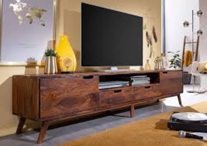 A rosewood TV stand combines functionality with beauty, providing a sturdy base for your television and storage for media devices. Rosewood's unique grain patterns and rich color make it a standout piece in any living room. Opt for a design with open shelves and closed cabinets for a balanced look.