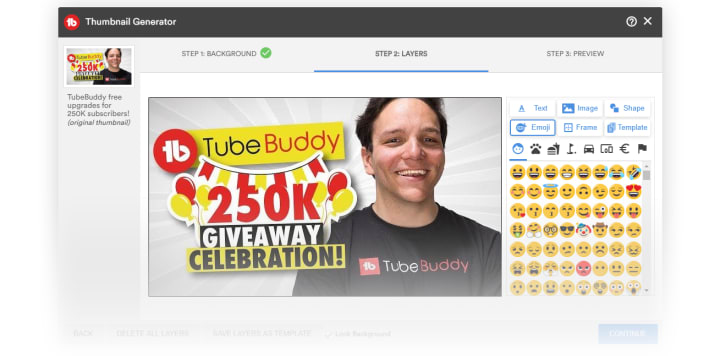 As fun as creating eye-catching thumbnails are, it can massively eat into your time. With TubeBuddy you can save templates to help you create professional looking thumbnails- quickly. This also enables you to keep your brand consistent which is essential for encouraging viewers to remember you!