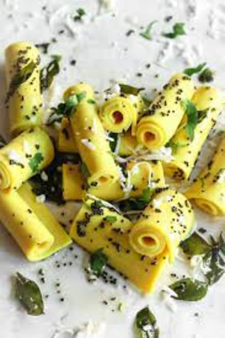 Khandvi is made up of thin layers of gramme flour that have been cooked with buttermilk and pushed up into soft sweetness along with a few different ingredients like sesame seeds that have been sautéed. It is essentially compelling due to the simple but fragrant garnishing of curry leaves, coriander, sautéed cumin, mustard, and coconut. Both Gujaratis and Maharashtrians are familiar with this snack, which is also known as "suralichya wadya" in Maharashtra. Everyone loves this meal, but none can deny that it can be tricky to prepare, especially when it comes to getting the player consistency just perfect. Khandvi is a delicious snack that is light on the stomach and gratifying on the tongue. It is perfect for breakfast or a delicious after-dinner treat.