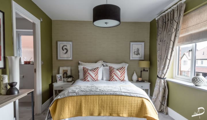 In your home, consider the coluors that you use for decoration. The colours in this photograph is a selection of greens. Green is considered the most restful colour for the eye, which brings calm, which is just what you need in a bedroom environment another way to enhance your health in your home is by widening the different natural light sources, that flow through the windows of your bedroom. The use of soft fabrics and texture all adds to the decor of any room, to add comfort to your home. Key points from collected research - consider mood enhancing colours when decorating and celebrate natural light in your rooms.