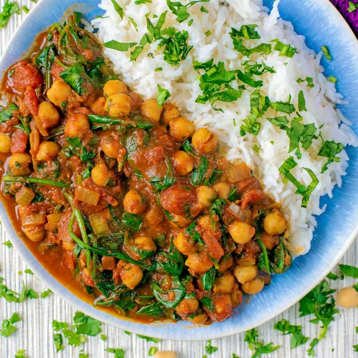This is a flavorful and healthy meal that can be prepared in under 30 minutes. Saute some onions and garlic in a pan, then add some canned chickpeas, diced tomatoes, and curry powder. Add some spinach and cook until it's wilted. Serve the curry over brown rice or quinoa for a complete meal. Chickpeas are a good source of protein and fiber, while spinach is packed with vitamins and minerals.
