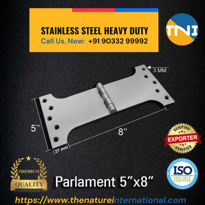 As we know Parliament hinges allow the door or window to open 180 degrees by keeping a good distance from the door frame and wall. Moreover, heavy-duty parliament hinges keep your doors and windows opening outwards to make a smooth arc as they open. When a heavy-duty hinge is used it makes the door smother to close and the door can be kinking free during closing. This allows the door to swing outwards and upwards. There are different styles of heavy-duty parliament hinges.