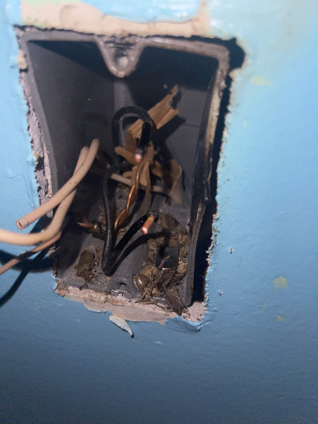 The bugs had packed themselves into the outlet and caught themselves and the wires on fire. The only thing that kept my house from burning down was the fire safety box that had been installed two years prior.