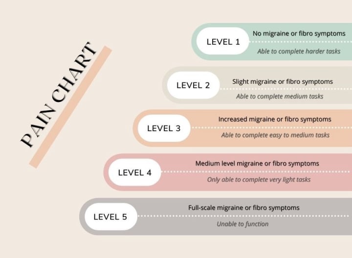 So I needed to create a pain chart of my daily symptoms. To create this chart I needed to really pay attention to my body, logging how I felt at the beginning and at the end of each day. I kept the pain log for several months. Each morning and evening I would log my pain level and symptoms.