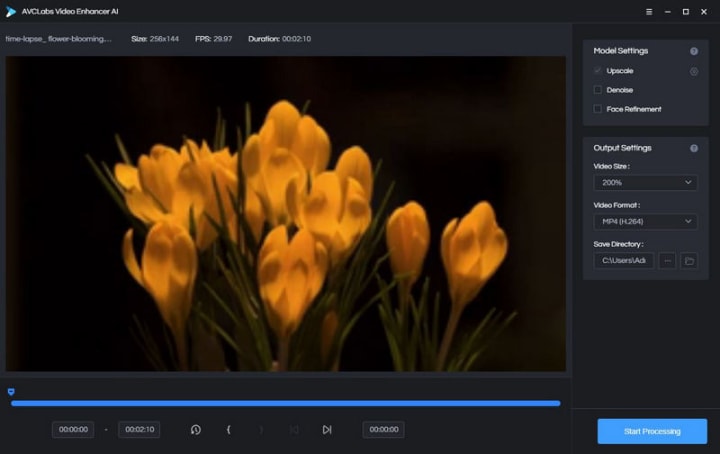 Click the "Play" button on the video to preview the video the first 30 frames of the video. If you are satisfied with the AI upscaled video, you can click the "Start Processing" button to start upscaling your favorite TV shows or any other types of video to 1080P, 4K, and even 8K. If you have other tasks needing to be worked on, you can pause the processing task and resume the processing if the computer is available.