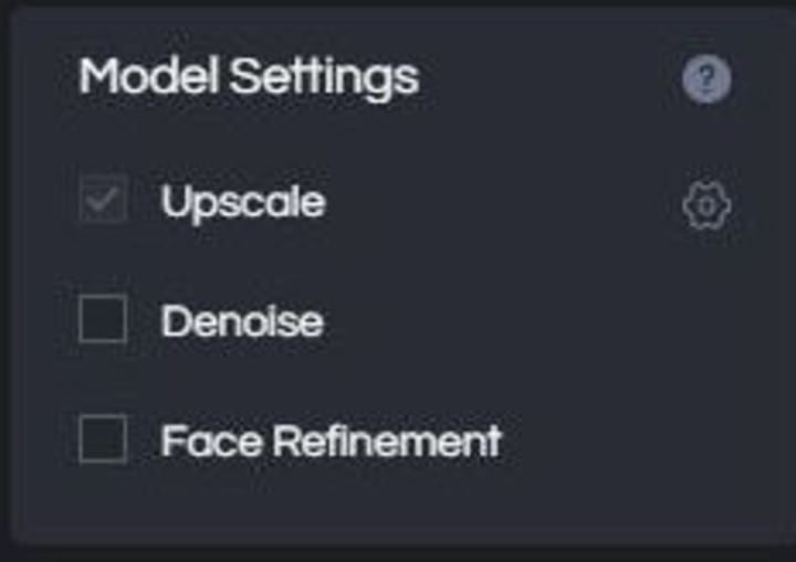 Model Settings: There are three options for Model Settings, including Upscale, Denoise, and Face Refinement. Tick the Denoise option if you want to remove noise from the video and select Face Refinement if you want to enhance the facial details of the video.