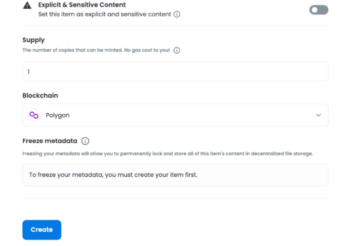 It is so important that you select polygon and not ethereum. When you select Ethereum, you will have to pay high gas fees when you want to sell your art.