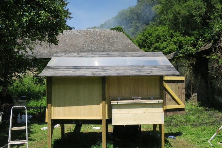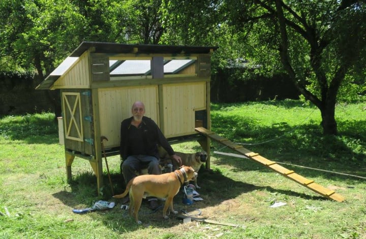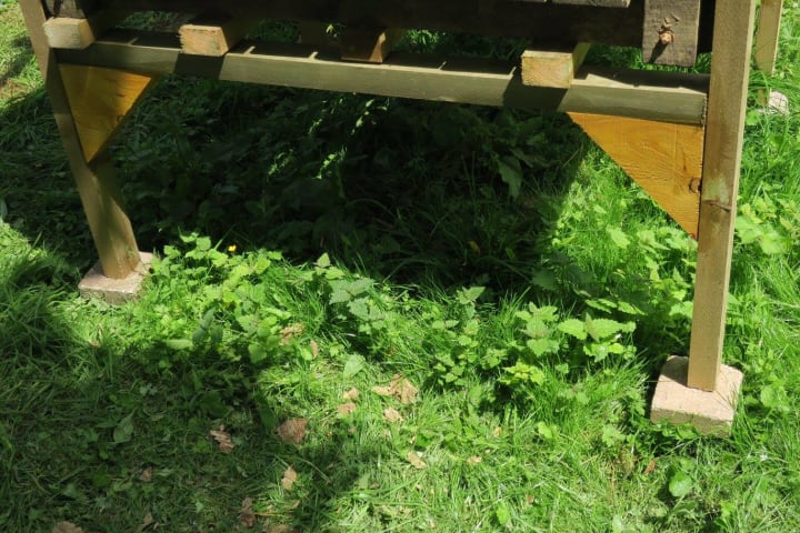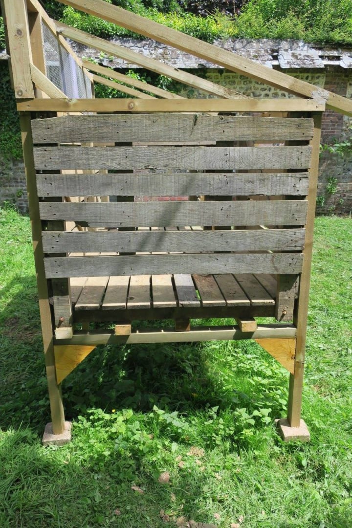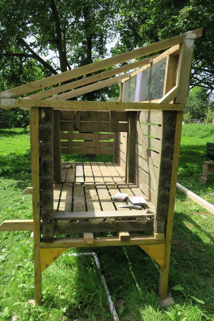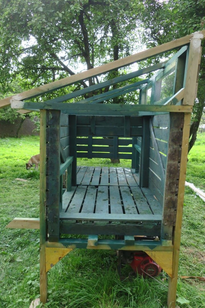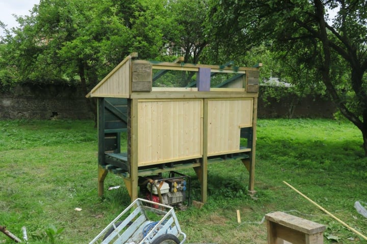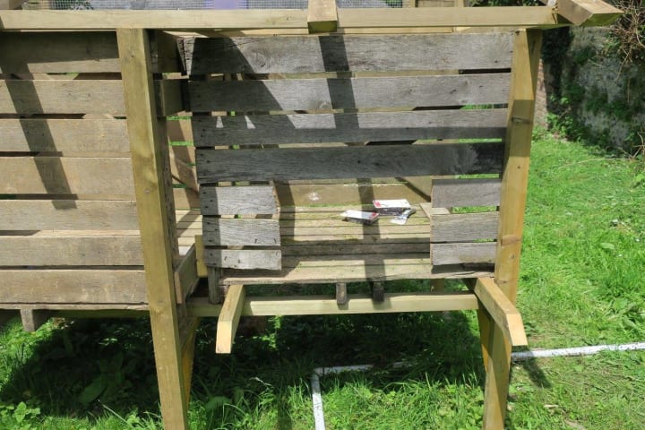 Right this is where you need your friends again you need to lift the chicken house up and put the legs on blocks.