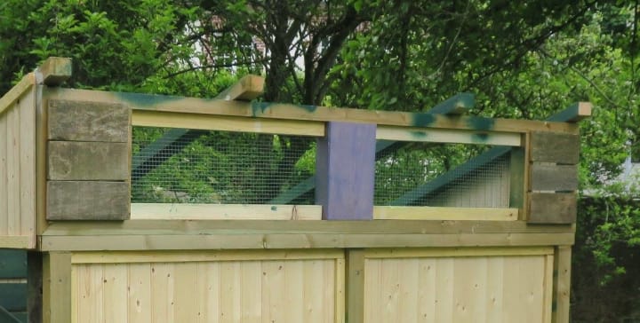 Now put your roof on. We painted it first and made it out of five planks and a sheet of Perspex we had lying around.