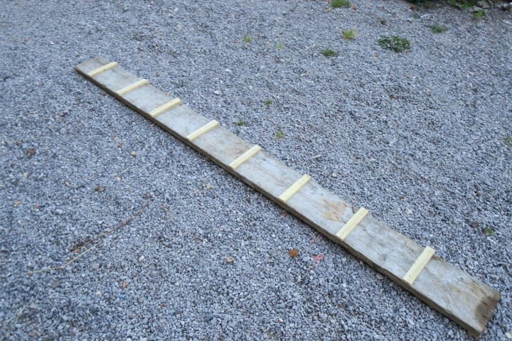 We used an old scaffold board that was not doing much and just added some cheap pine strips for the steps. These planks can get slippy and icy in the winter and the chickens will need these steps.