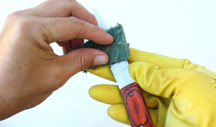To treat oxidation you will need a nylon pad. You will also need a clean, soft cloth to dry the knife when you finish cleaning it.