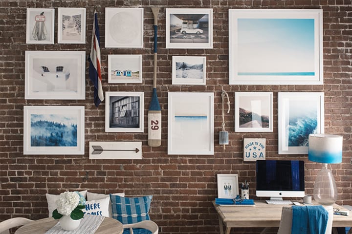 Themes and colors play a big role in the entire look of your gallery wall. Displays that have a core concept look tighter and more cohesive than those that don't. And color is the main line that ties all of the elements of your gallery wall together.