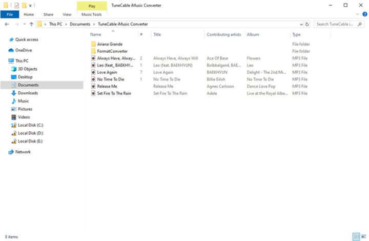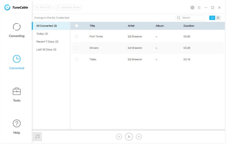 All converted Apple Music songs will show in 'Converted' module after conversion. You can play these songs in TuneCable directly. The program will remain all ID3 tags information of each song.