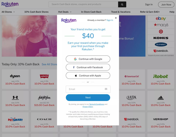 The first thing you’ll need to do is create a Rakuten account.