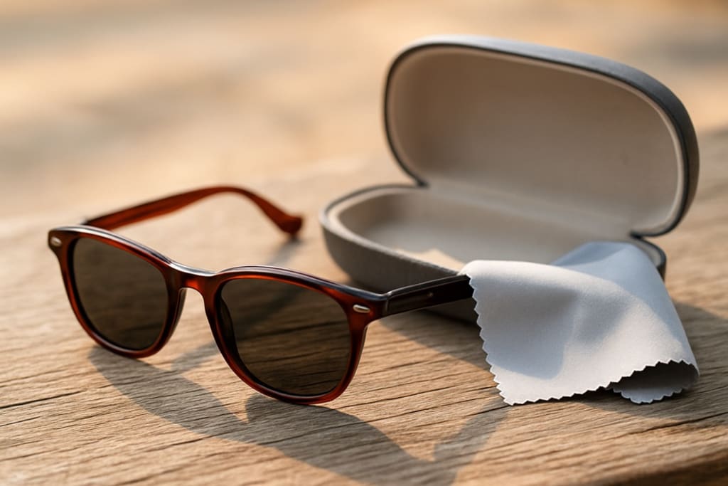 The best storage option is a hard-shell protective case, which prevents the frames from being crushed and keeps the lenses free from scratches. For lighter protection, a microfiber pouch is a practical alternative. These pouches are easy to carry and double as cleaning cloths. Another important habit is to avoid leaving sunglasses in high-heat areas such as car dashboards. Prolonged heat can warp plastic frames, loosen adhesives, and reduce the durability of lens coatings. By storing them properly, you create an extra layer of protection that preserves both appearance and functionality.