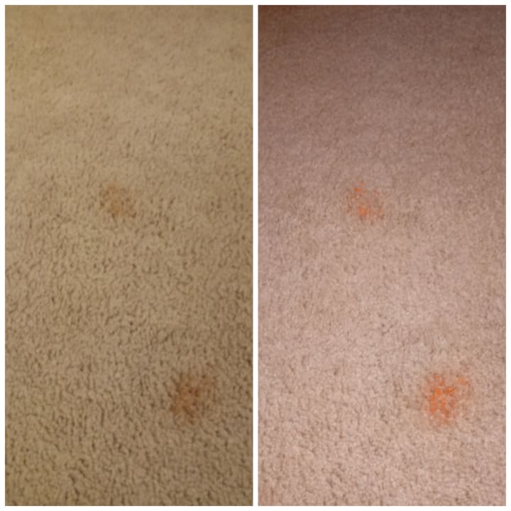 Four hand-sized stains and numerous smaller ones, nicely smashed into the carpet. And man, that stuff dries quick. It was one of those “yeah I’m not dealing with this right now” moments, so it got to settle in and get comfortable for a few weeks.