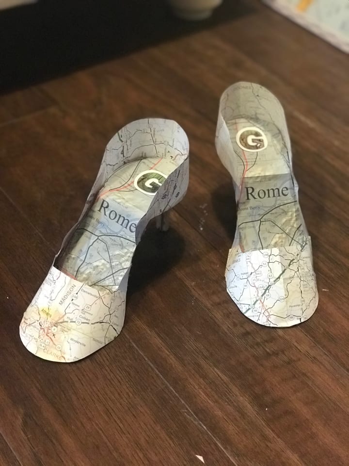 When we made the dress above we used Georgia and Rome City maps. An entire dress out of maps… sounds maptastic! It was a great way to show off our town and get publicity for our gift shop. If you have a certain paper or design that you can use to make your dress more relevant to your business then take advantage of it!