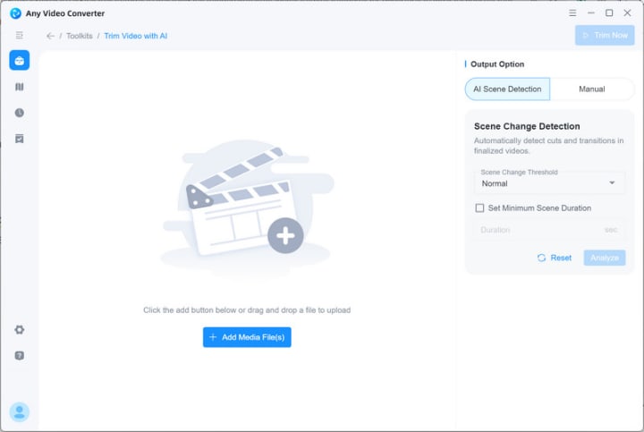 Open Any Video Converter and choose the "Trim Video with AI" tool from the tool list. Click the "Add Media File(s)" to import your MKV file.