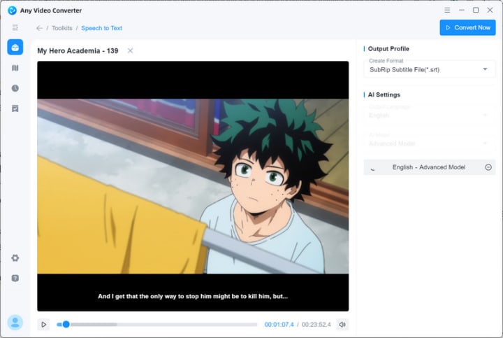 2. Transcribe MKV to text. If you want to add external subtitles to your MKV video, you can use the Speech to Text tool of Any Video Converter to transcribe the audio into text and export it as .srt, so that you can add it to the MKV video. Don't worry about the accuracy.